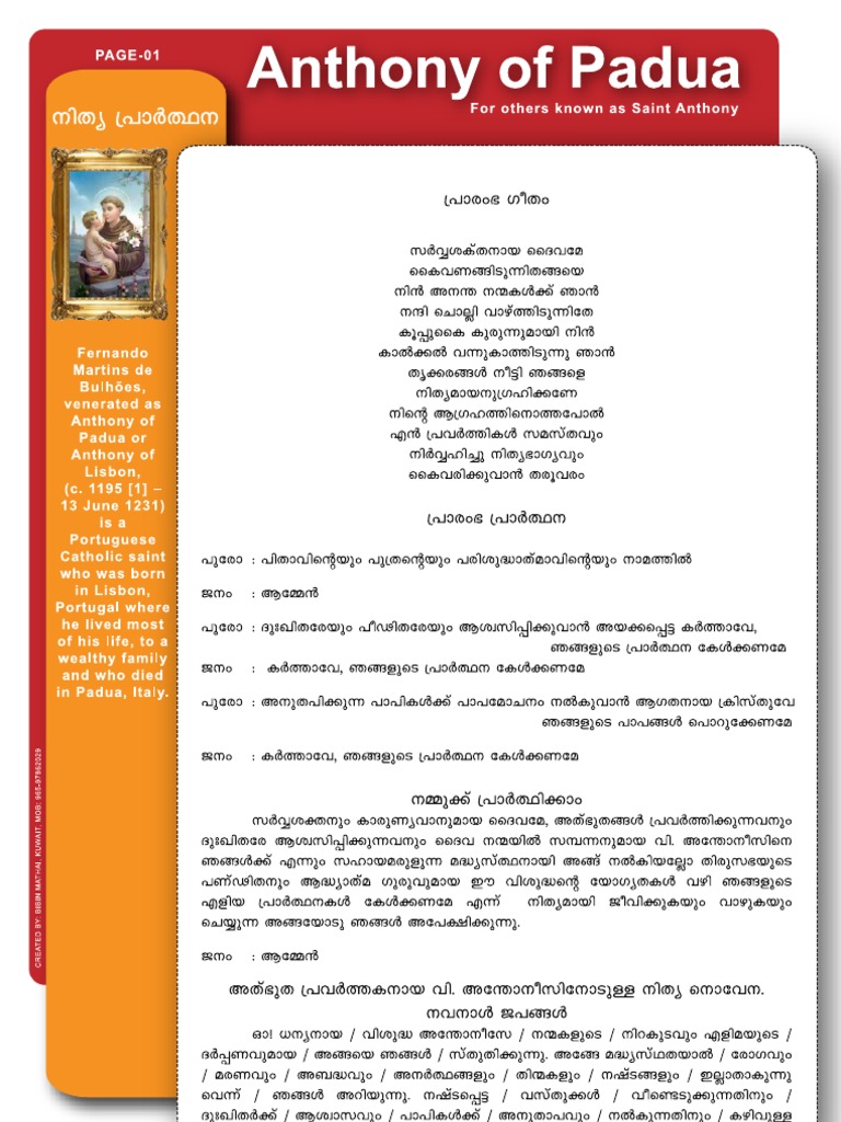 Holy Spirit Novena English. Special and Powerful Patron of the Desperate. St anthony novena malayalam pdf StAntony Novena in Malayalam.